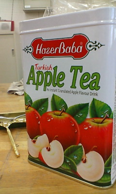 夏休みにトルコに行ってた方からのお土産でアップルティーです。粉末状の製品をお湯で溶かして頂くタイプで、むこうではこれが主流なのだとか。teaというよりjuiceでしたが、甘酸っぱくて美味しいー。