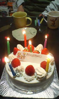父上の誕生日のお祝いをしました。本当は明日なんですけど、皆様お仕事があるし仕方ないです。昨日書いたカラオケの件も一応そんな名目だったのですな。カラオケで4時間ほど歌って、ケーキ買って帰りました。